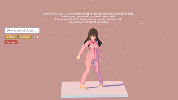 A new game for Learning-Bot is now available. The game consist of a girl character named Julie and the objective is to converse with her. Julie will give different reaction to your words. The game is available in english and french and free for everyone. Be aware that there can be hidden tricks.
